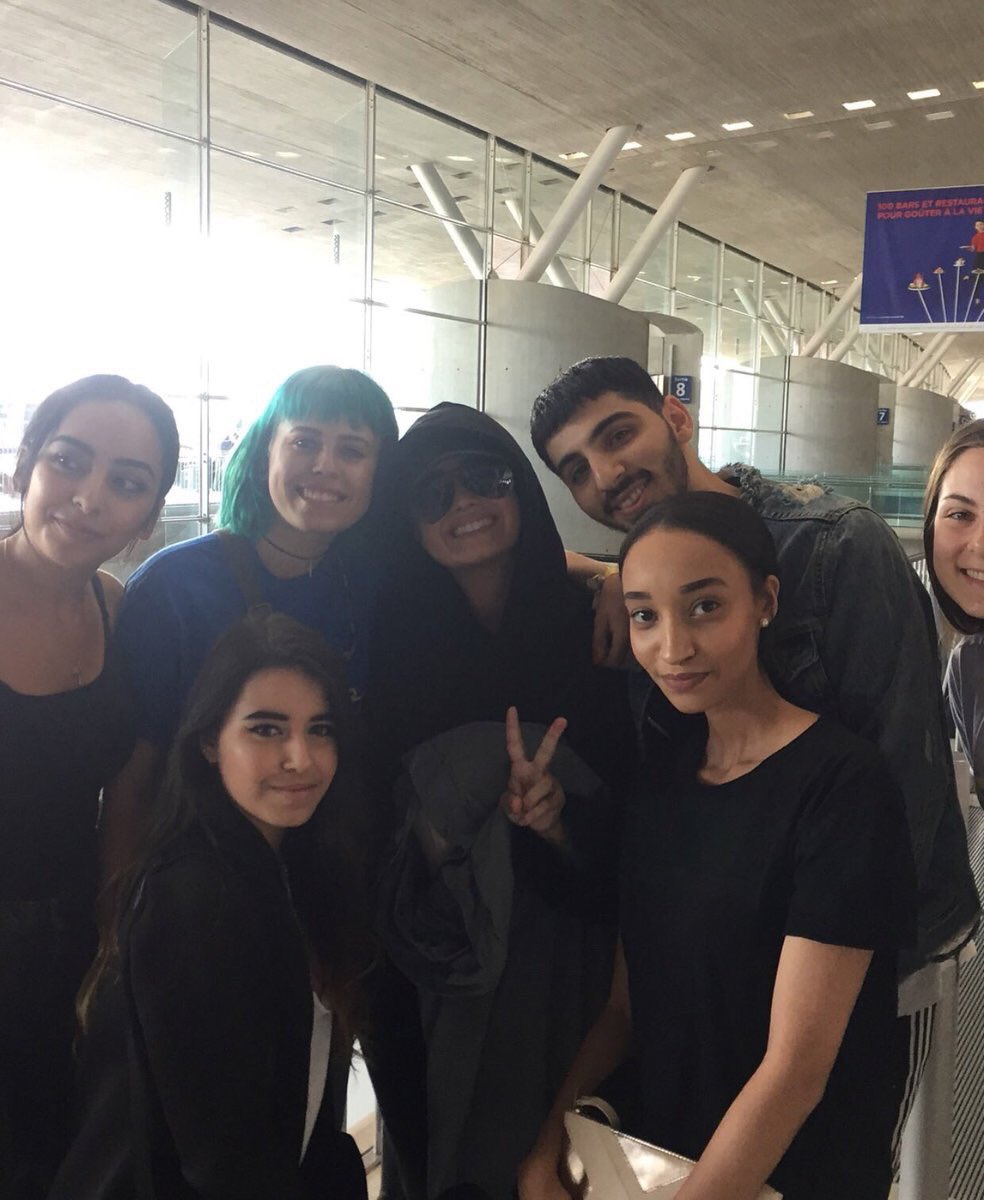 « Après des années d’attentes, j’ai rencontré Demi pour la première fois le 03 Juin 2018 à l’aéroport Charles de Gaule puisqu’elle passait à Paris pour un concert. Nous n’étions que 6, entre ami.e.s, Demi a été très gentille avec nous. Lorsqu’elle nous a vu, elle nous a immédiatement proposé de faire chacun.e une photo avec elle, son agent de sécurité Max a préféré que l’on fasse une photo groupée, alors c’est ce qu’on a fait ! On a juste eu le temps de lui demander comment elle allait, c’est passé si vite! J’étais si stressée, la pression est retombée en une seule seconde, j’ai.. beaucoup pleuré. Ayant attendu ce moment, j’ai été choquée de sa douceur, elle est vraiment belle ! J’étais sur un petit nuage, surtout que j’avais un Meet & Greet pour le lendemain, j’allais donc de nouveau la rencontrer.