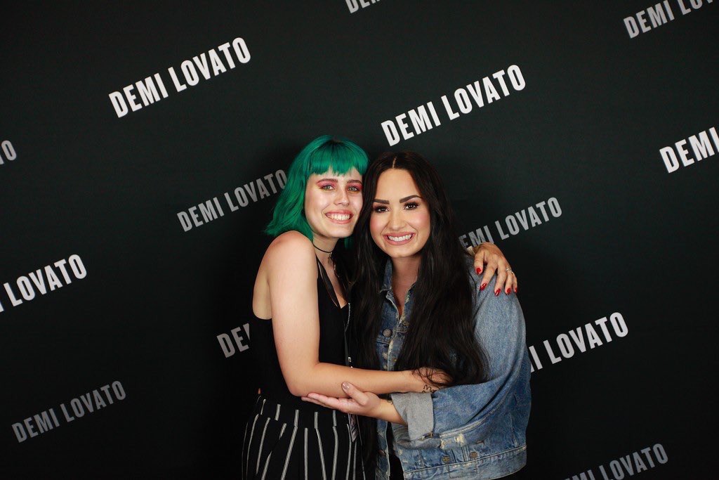 Arrivé le jour J, j’ai passé la journée avec mes ami.e.s rencontrés sur les réseaux sociaux grâce à Demi et sa musique, cette journée était parfaite. Je me sentais vraiment bien mais très stressée à l’idée d’être à nouveau face à Demi ! Avant l’ouverture des portes de la salle de concert, les M&G ont débuté et nous avons du poser nos téléphones, nos affaires pour entrer, nous étions une trentaine. Le stress ne cessait de monter. C’était enfin le moment, mon tour. Je suis entrée dans la petite pièce et je me suis retrouvée face à Demi, j’en ai perdu mes mots (ce qui ne m’étais jamais arrivé), elle m’a tout de suite dit qu’elle adorait mes cheveux, je l’ai remercié. Elle m’a demandé quelle pose je voulais pour la photo alors je lui ai demandé si je pouvais poser ma main sur elle et faire ce petit câlin pour la photo. La photo a été prise, on me demande de partir, j’étais tellement secouée que je lui ai dis « passe une bonne journée » alors qu’il était.. 19H et que le concert commençait bientôt. J’étais si perdue mais si heureuse. Je n’ai eu que quelques secondes mais c’était clairement les plus belles secondes de ma vie. »